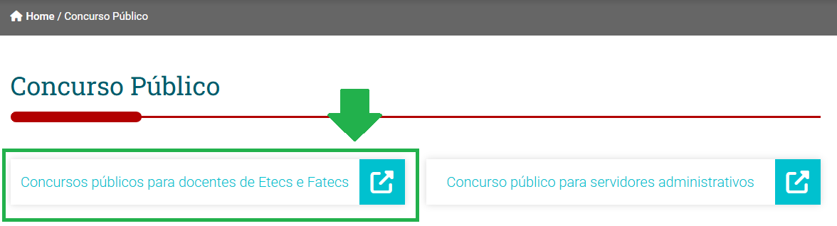 • 3 – Na nova página clicar no botão “Concursos públicos para docentes de Etecs e Fatecs“;
