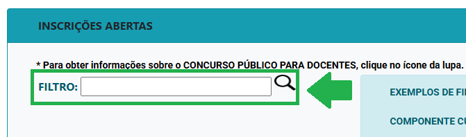 • 2 – Escreva na “Barra de Busca” o que você o que você deseja localizar (sugerimos escrever o número do Edital (XXX/XX/20XX) onde você se inscreveu, entre aspas (“”), como no exemplo da figura) e depois no botão “Enter” do teclado ou no botão com o desenho da “Lupa” (conforme figura abaixo);