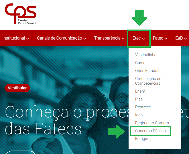 • 2 – Clicar em “Etec” e, em seguida, “Concurso Público“;