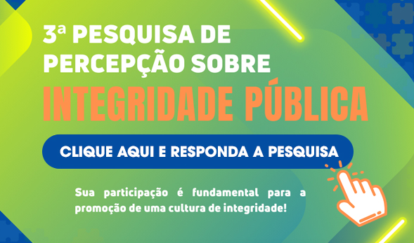 DATA: 23/09/2025 – A Superintendência de Integridade (SINT) e a Unidade de Gestão de Integridade (UGI) solicitam a ampla divulgação e o engajamento do corpo docente e administrativo dessa Unidade de Ensino na 3ª Pesquisa de Percepção sobre Integridade Pública, que está sendo realizada por iniciativa da